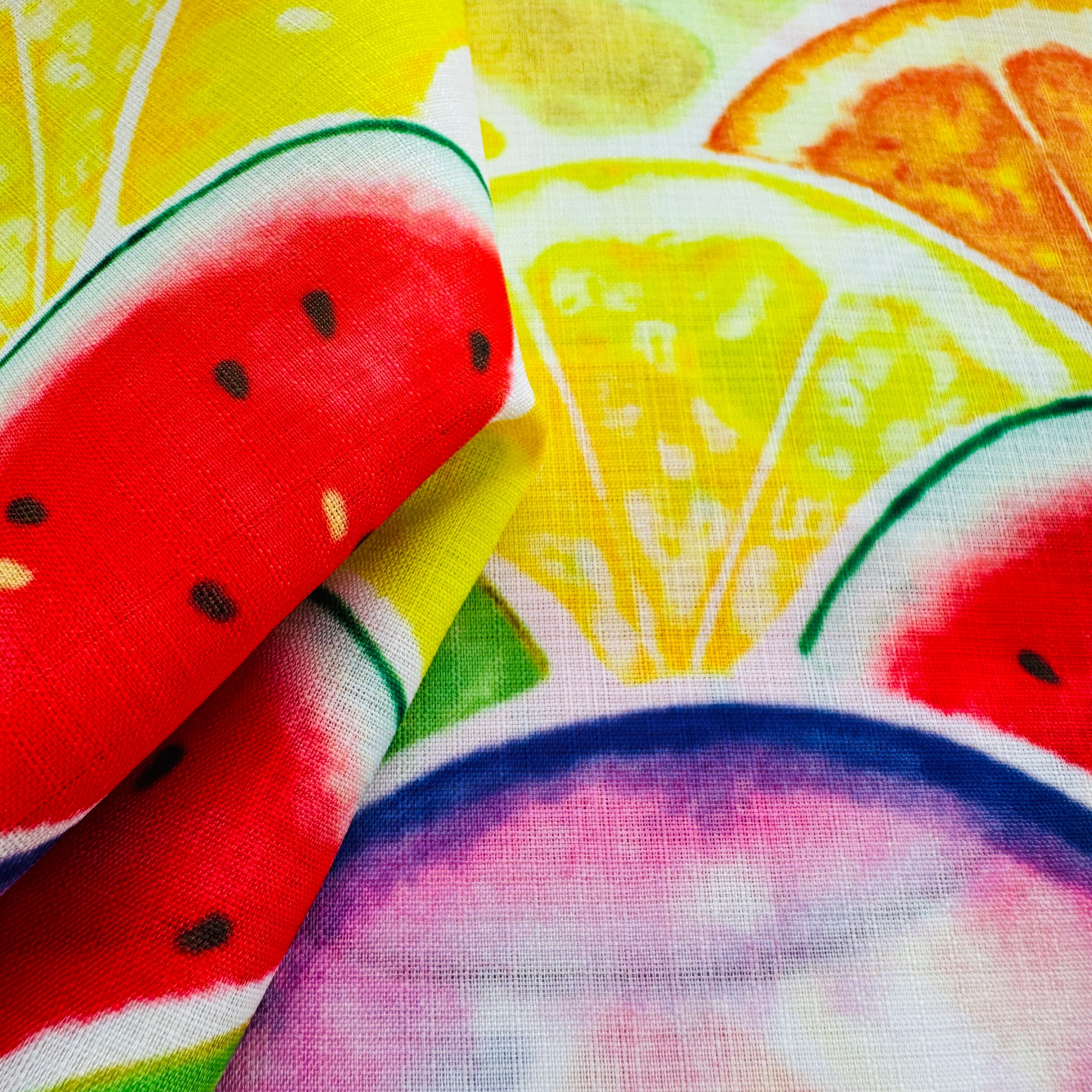カラフルなフルーツが青海波に並べられています。
